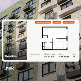 Продаётся 1-комн. квартира площадью 34,2 кв.м на 19 этаже 24 этажного дома (Корпус 12, Секция 1) проекта ПИК Яуза парк. Светлый просторный подъезд на уровне земли, функциональная планировка, большие окна, предчистовая отделка. Жилой квартал ''Яуза парк'' возводится в Мытищах, в 5 минутах ходьбы от одноимённой ж/д станции. Проект включает 20 домов разной этажности с благоустроенными дворами-парками. Сейчас в квартале началось строительство новых корпусов 7-12. Это отличная возможность купить квартиру по стартовой цене. Индивидуальный дизайн фасадов разработали архитектурные бюро KATARSIS и RHIZOME. Вблизи жилого квартала появятся шумопоглощающие экраны, позволяющие забыть о том, что неподалёку находятся железнодорожные пути. На первых этажах домов откроются магазины, кафе, салоны красоты и другие полезные сервисы. Рядом есть школы и детские сады, магазины и ТРЦ ''Красный кит''. На территории проекта появится благоустроенная набережная реки Яузы и пешеходный бульвар для прогулок всей семьёй. Водонапорную башню XIX века, расположенную на территории ''Яуза парка'', мы реставрируем и создадим вокруг неё общественное пространство для отдыха жителей квартала. Для прогулок отлично подойдёт Мытищинский центральный парк культуры и отдыха, расположенный в 10 минутах ходьбы, и Лосиный остров — в 24 минутах. Дорога на автомобиле до Ярославского шоссе займёт не более 3 минут, до МКАД — 10 минут. Артикул 1000836 (Застройщик ООО ''Специализированный ''НМ-Консалт'')