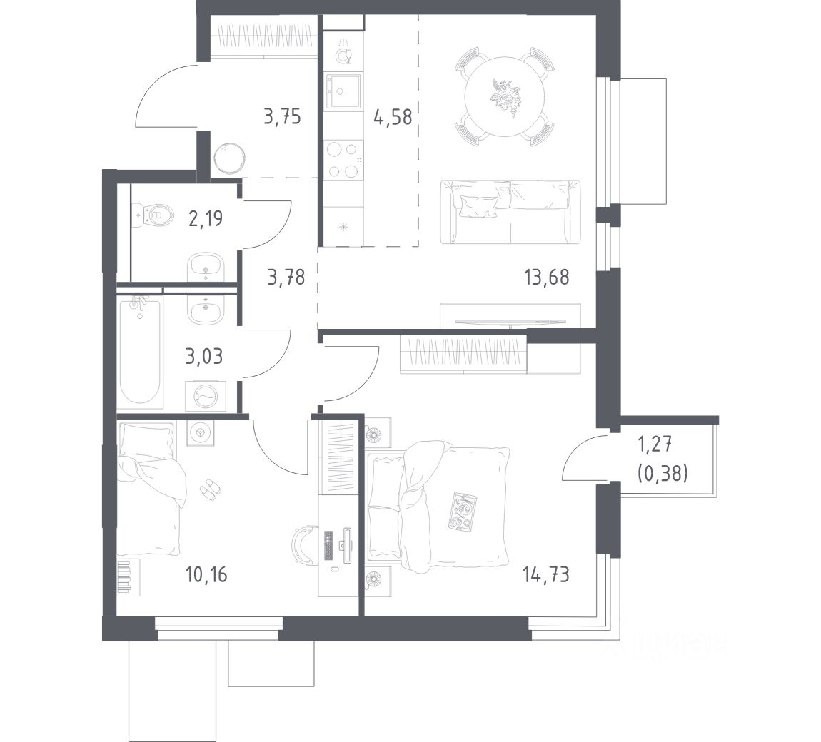 56 м² · Этаж 10 из 17