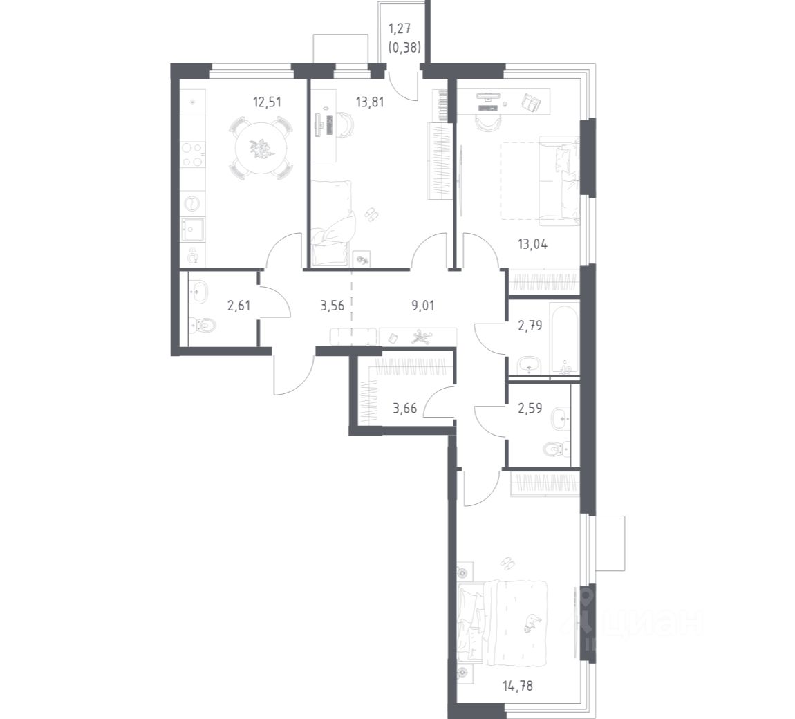 Четырехкомнатные