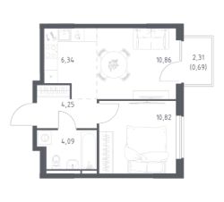 В продаже 1-комнатная квартира в корпусе 4.2 ЖК 'Мытищи Парк'. Квартира располагается на 7 этаже, общая площадь 33.9 м2.