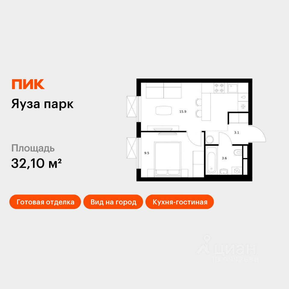 Продаётся 1-комн. квартира площадью 32,1 кв.м на 2 этаже 25 этажного дома (Корпус 9, Секция 1) проекта ПИК Яуза парк. Светлый просторный подъезд на уровне земли, функциональная планировка, большие окна, c отделкой. Жилой квартал ''Яуза парк'' возводится в Мытищах, в 5 минутах ходьбы от одноимённой ж/д станции. Проект включает 20 домов разной этажности с благоустроенными дворами-парками. Сейчас в квартале началось строительство новых корпусов 7-12. Это отличная возможность купить квартиру по стартовой цене. Индивидуальный дизайн фасадов разработали архитектурные бюро KATARSIS и RHIZOME. Вблизи жилого квартала появятся шумопоглощающие экраны, позволяющие забыть о том, что неподалёку находятся железнодорожные пути. На первых этажах домов откроются магазины, кафе, салоны красоты и другие полезные сервисы. Рядом есть школы и детские сады, магазины и ТРЦ ''Красный кит''. На территории проекта появится благоустроенная набережная реки Яузы и пешеходный бульвар для прогулок всей семьёй. Водонапорную башню XIX века, расположенную на территории ''Яуза парка'', мы реставрируем и создадим вокруг неё общественное пространство для отдыха жителей квартала. Для прогулок отлично подойдёт Мытищинский центральный парк культуры и отдыха, расположенный в 10 минутах ходьбы, и Лосиный остров — в 24 минутах. Дорога на автомобиле до Ярославского шоссе займёт не более 3 минут, до МКАД — 10 минут. Артикул 998104 (Застройщик ООО ''Специализированный ''НМ-Консалт'')