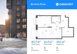 Строим кварталы для жизни с заботой о будущем. Предлагается 1-комнатная квартира комфорт-класса 50,68 кв.м в корпусе 3 на 5 этаже, в ЖК ''Долина Яузы''Квартира с чистовой отделкой. Доступность дополнительных опций уточняйте у застройщика.Приобрести квартиру возможно по специальным акциям от застройщика, с текущими условиями акций можно ознакомиться в блоке ''Акций''.Цена динамическая и может отличаться, уточняйте актуальность у застройщика.Жилой комплекс комфорт-класса ''Долина Яузы'' расположен на северо-востоке Московской области, в 200 м от МКАД. До ж/д станции Перловская или набережной реки Яуза можно дойти за 10 минут. В шаговой доступности находятся детские сады, школы, стоматология и поликлиника. Есть супермаркеты и кофейни, детские и спортивные площадки, зоны отдыха под навесом. У каждого дома будет собственный двор-сад, где посадят плодовые и вечнозеленые деревья и кустарники. Территория около жилого комплекса закрыта от машин и посторонних и круглосуточно охраняется. В жилом комплексе ''Долина Яузы'' большой выбор квартир: от однокомнатных до трехкомнатных. Квартиры сдаются с готовой отделкой или без нее.