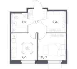 В продаже 1-комнатная квартира в корпусе 5 ЖК 'Мытищи Парк'. Квартира располагается на 5 этаже, общая площадь 35.81 м2.