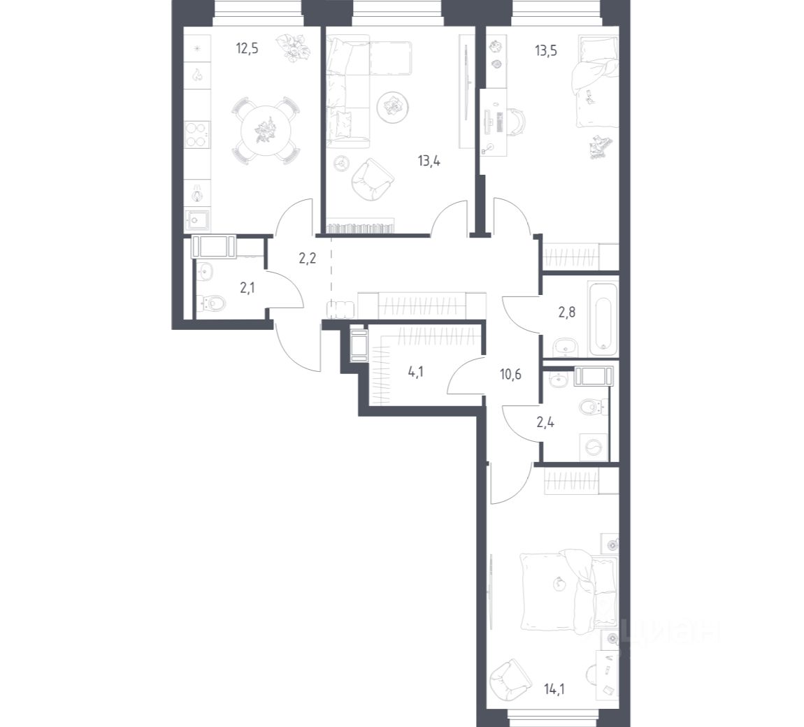 Четырехкомнатные