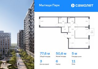 Предлагается 3-комнатная квартира комфорт-класса 77,55 кв.м в корпусе 6 на 11 этаже, в ЖК ''Мытищи Парк''Квартира с предчистовой отделкой. Доступность дополнительных опций уточняйте у застройщика.Приобрести квартиру возможно по специальным акциям от застройщика, с текущими условиями акций можно ознакомиться в блоке Акций.Цена динамическая и может отличаться, уточняйте актуальность у застройщика.ЖК ''Мытищи Парк'' — это надежные и долговечные монолитные корпуса. При проектировании домов и территории застройщик учел потребности жильцов всех возрастов — молодых пар, семей с детьми и пожилых людей.ЖК ''Мытищи Парк'' расположен в Московской области и с двух сторон окружен Пироговским лесопарком.