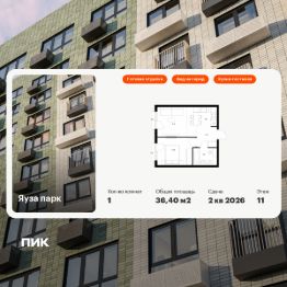 Продаётся 1-комн. квартира площадью 36,4 кв.м на 11 этаже 24 этажного дома (Корпус 5, Секция 1) проекта ПИК Яуза парк. Светлый просторный подъезд на уровне земли, функциональная планировка, большие окна, c отделкой. Жилой квартал ''Яуза парк'' возводится в Мытищах, в 5 минутах ходьбы от одноимённой ж/д станции. Проект включает 20 домов разной этажности с благоустроенными дворами-парками. Сейчас в квартале началось строительство новых корпусов 7-12. Это отличная возможность купить квартиру по стартовой цене. Индивидуальный дизайн фасадов разработали архитектурные бюро KATARSIS и RHIZOME. Вблизи жилого квартала появятся шумопоглощающие экраны, позволяющие забыть о том, что неподалёку находятся железнодорожные пути. На первых этажах домов откроются магазины, кафе, салоны красоты и другие полезные сервисы. Рядом есть школы и детские сады, магазины и ТРЦ ''Красный кит''. На территории проекта появится благоустроенная набережная реки Яузы и пешеходный бульвар для прогулок всей семьёй. Водонапорную башню XIX века, расположенную на территории ''Яуза парка'', мы реставрируем и создадим вокруг неё общественное пространство для отдыха жителей квартала. Для прогулок отлично подойдёт Мытищинский центральный парк культуры и отдыха, расположенный в 10 минутах ходьбы, и Лосиный остров — в 24 минутах. Дорога на автомобиле до Ярославского шоссе займёт не более 3 минут, до МКАД — 10 минут. Артикул 940421 (Застройщик ООО ''Специализированный ''НМ-Консалт'')