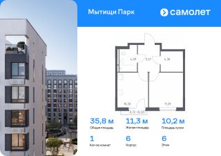 Предлагается 1-комнатная квартира комфорт-класса 35,77 кв.м в корпусе 6 на 6 этаже, в ЖК ''Мытищи Парк''Квартира с предчистовой отделкой. Доступность дополнительных опций уточняйте у застройщика.Приобрести квартиру возможно по специальным акциям от застройщика, с текущими условиями акций можно ознакомиться в блоке Акций.Цена динамическая и может отличаться, уточняйте актуальность у застройщика.ЖК ''Мытищи Парк'' — это надежные и долговечные монолитные корпуса. При проектировании домов и территории застройщик учел потребности жильцов всех возрастов — молодых пар, семей с детьми и пожилых людей.ЖК ''Мытищи Парк'' расположен в Московской области и с двух сторон окружен Пироговским лесопарком.