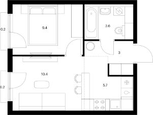 44 м2