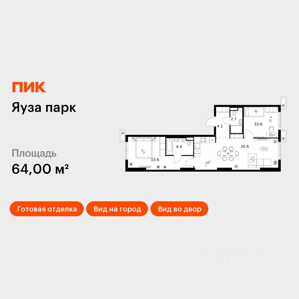 Продаётся 2-комн. квартира площадью 59 кв.м на 7 этаже 15 этажного дома (Корпус 13, Секция 1) проекта ПИК Яуза парк. Светлый просторный подъезд на уровне земли, функциональная планировка, большие окна, c отделкой. Жилой квартал ''Яуза парк'' возводится в Мытищах, в 5 минутах ходьбы от одноимённой ж/д станции. Проект включает 20 домов разной этажности с благоустроенными дворами-парками. Сейчас в квартале началось строительство новых корпусов 7-12. Это отличная возможность купить квартиру по стартовой цене. Индивидуальный дизайн фасадов разработали архитектурные бюро KATARSIS и RHIZOME. Вблизи жилого квартала появятся шумопоглощающие экраны, позволяющие забыть о том, что неподалёку находятся железнодорожные пути. На первых этажах домов откроются магазины, кафе, салоны красоты и другие полезные сервисы. Рядом есть школы и детские сады, магазины и ТРЦ ''Красный кит''. На территории проекта появится благоустроенная набережная реки Яузы и пешеходный бульвар для прогулок всей семьёй. Водонапорную башню XIX века, расположенную на территории ''Яуза парка'', мы реставрируем и создадим вокруг неё общественное пространство для отдыха жителей квартала. Для прогулок отлично подойдёт Мытищинский центральный парк культуры и отдыха, расположенный в 10 минутах ходьбы, и Лосиный остров — в 24 минутах. Дорога на автомобиле до Ярославского шоссе займёт не более 3 минут, до МКАД — 10 минут. Артикул 1057478 (Застройщик ООО ''Специализированный ''НМ-Консалт'')