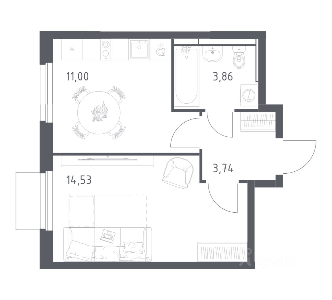 38 м² · Этаж 15 из 17