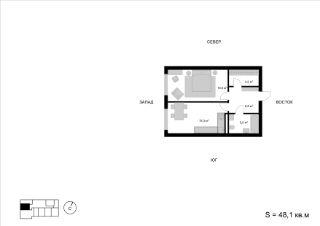 Продаётся 1-комнатная квартира в строящемся доме (Корпус 1), срок сдачи: I-кв. 2026, общей площадью 48.1 кв.м., на 9 этаже. Многоквартирный жилой дом со встроенно-пристроенными нежилыми помещениями и автостоянкой