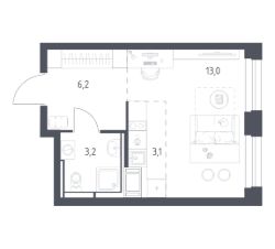 В продаже студия в корпусе 5 ЖК 'Мытищи Парк'. Квартира располагается на 13 этаже, общая площадь 25.9 м2.