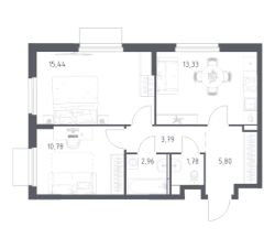 В продаже 2-комнатная квартира в корпусе 5 ЖК 'Мытищи Парк'. Квартира располагается на 3 этаже, общая площадь 53.36 м2.