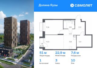 Строим кварталы для жизни с заботой о будущем. Предлагается 1-комнатная квартира комфорт-класса 53,16 кв.м в корпусе 2 на 3 этаже, в ЖК ''Долина Яузы''Квартира с чистовой отделкой. Доступность дополнительных опций уточняйте у застройщика.Приобрести квартиру возможно по специальным акциям от застройщика, с текущими условиями акций можно ознакомиться в блоке ''Акций''.Цена динамическая и может отличаться, уточняйте актуальность у застройщика.Жилой комплекс комфорт-класса ''Долина Яузы'' расположен на северо-востоке Московской области, в 200 м от МКАД. До ж/д станции Перловская или набережной реки Яуза можно дойти за 10 минут. В шаговой доступности находятся детские сады, школы, стоматология и поликлиника. Есть супермаркеты и кофейни, детские и спортивные площадки, зоны отдыха под навесом. У каждого дома будет собственный двор-сад, где посадят плодовые и вечнозеленые деревья и кустарники. Территория около жилого комплекса закрыта от машин и посторонних и круглосуточно охраняется. В жилом комплексе ''Долина Яузы'' большой выбор квартир: от однокомнатных до трехкомнатных. Квартиры сдаются с готовой отделкой или без нее.