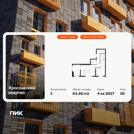2-к, Ярославский ЖК, 2.2 Показать на карте