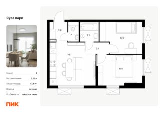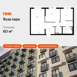 Продаётся 2-комн. квартира площадью 61 кв.м на 18 этаже 24 этажного дома (Корпус 6, Секция 1) проекта ПИК Яуза парк. Светлый просторный подъезд на уровне земли, функциональная планировка, большие окна, c отделкой. Жилой квартал ''Яуза парк'' возводится в Мытищах, в 5 минутах ходьбы от одноимённой ж/д станции. Проект включает 20 домов разной этажности с благоустроенными дворами-парками. Сейчас в квартале началось строительство новых корпусов 7-12. Это отличная возможность купить квартиру по стартовой цене. Индивидуальный дизайн фасадов разработали архитектурные бюро KATARSIS и RHIZOME. Вблизи жилого квартала появятся шумопоглощающие экраны, позволяющие забыть о том, что неподалёку находятся железнодорожные пути. На первых этажах домов откроются магазины, кафе, салоны красоты и другие полезные сервисы. Рядом есть школы и детские сады, магазины и ТРЦ ''Красный кит''. На территории проекта появится благоустроенная набережная реки Яузы и пешеходный бульвар для прогулок всей семьёй. Водонапорную башню XIX века, расположенную на территории ''Яуза парка'', мы реставрируем и создадим вокруг неё общественное пространство для отдыха жителей квартала. Для прогулок отлично подойдёт Мытищинский центральный парк культуры и отдыха, расположенный в 10 минутах ходьбы, и Лосиный остров — в 24 минутах. Дорога на автомобиле до Ярославского шоссе займёт не более 3 минут, до МКАД — 10 минут. Артикул 940920 (Застройщик ООО ''Специализированный ''НМ-Консалт'')