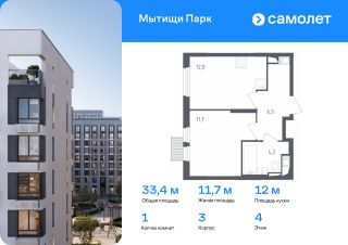 Продаётся 1-комнатная квартира в сданном доме (Корпус 3), срок сдачи: IV-кв. 2023, общей площадью 33.4 кв.м., на 4 этаже. При выборе места строительства мы отталкивались от потребностей реальных людей: семей с детьми, для которых важна близость школ, детских садов и поликлиник, молодёжи, которая активно строит карьеру, людей постарше, которые ценят тишину, чистый воздух, доступность магазинов и других социальных объектов. В то же время комплекс с двух сторон окружает Пироговский лесопарк площадью 1800 га. До национального парка ''Лосиный остров'' и Пироговского водохранилища - 15 минут на автомобиле. Проект включает 3 детских сада, 2 школы и физкультурно-оздоровительный комплекс. А на площадках Playhub юные жители комплекса ''Мытищи Парк'' смогут играть круглый год. Территория комплекса будет огорожена. Чтобы сделать дворы уютнее, мы посадим крупные деревья, кустарники и другие растения. Также обустроим пешеходный бульвар с центральной площадью для проведения мероприятий. В корпусах предусмотрены кладовые помещения - удобное и современное решения для хранения сезонного спортивного инвентаря и других крупногабаритных вещей.
