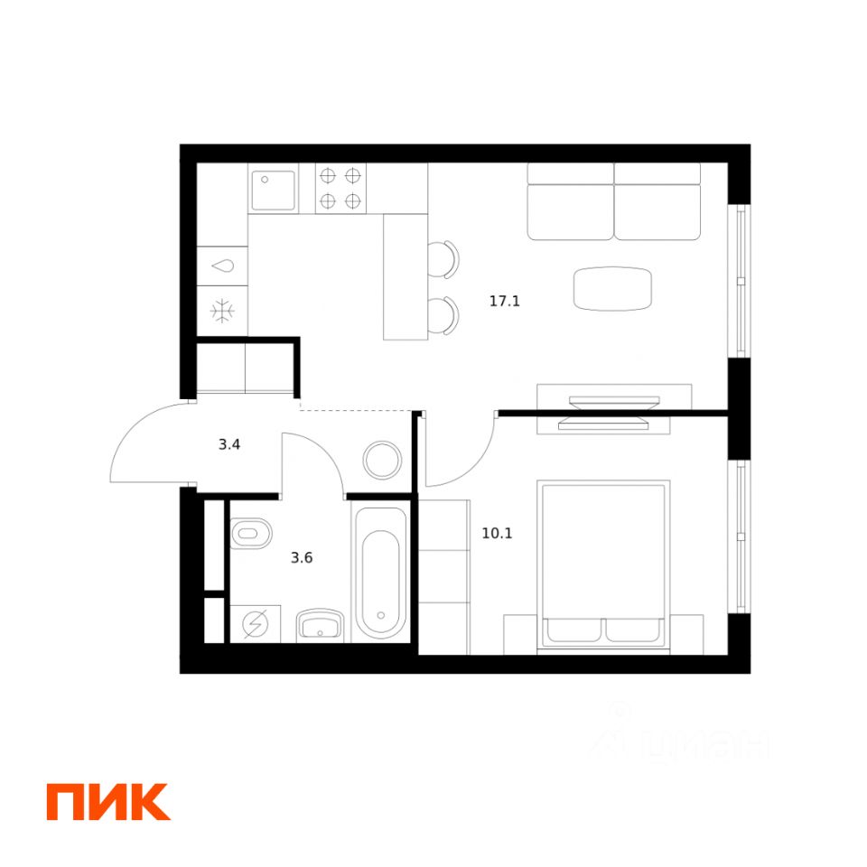 34 м² · Этаж 19 из 24