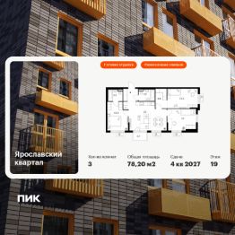 Продаётся 3-комн. квартира площадью 78 кв.м на 13 этаже 25 этажного дома (Корпус 2.4, Секция 1) проекта ПИК Ярославский квартал. Светлый просторный подъезд на уровне земли, функциональная планировка, большие окна, c отделкой. Проект ''Ярославский квартал'' возводится в Мытищах, в 6 км от МКАД. Жилой квартал, состоящий из 8 корпусов, строится рядом с Ярославским шоссе и имеет удобный заезд с крупной автомагистрали.На территории проекта появится школа, детский сад и пешеходный бульвар. Индивидуальные дизайны фасадов для ''Ярославского квартала'' разработало петербургское архитектурное бюро RHIZOME. В их портфолио вошли работы для Московского музея современного искусства, ГЦСИ, Манифеста 10 и ЦВЗ Манеж.За 7 минут можно дойти пешком до ближайшей автобусной остановки. Столько же займёт дорога до ''Лосиного острова'' - облагороженного парка с разными активностями для всей семьи, благоустроенными зонами для отдыха, местами для прогулок и пробежек на свежем воздухе.Доехать на автомобиле до Ярославского шоссе получится за 3 минуты, до станции ''Мытищи'' - за 9 минут, до МКАД - за 15 минут. Артикул 1013486 (Застройщик ООО ''Специализированный ''ГЕОПАРК'')