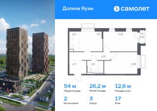 Строим кварталы для жизни с заботой о будущем. Предлагается 2-комнатная квартира комфорт-класса 56,07 кв.м в корпусе 2 на 17 этаже, в ЖК ''Долина Яузы''Квартира с чистовой отделкой. Доступность дополнительных опций уточняйте у застройщика.Приобрести квартиру возможно по специальным акциям от застройщика, с текущими условиями акций можно ознакомиться в блоке ''Акций''.Цена динамическая и может отличаться, уточняйте актуальность у застройщика.Жилой комплекс комфорт-класса ''Долина Яузы'' расположен на северо-востоке Московской области, в 200 м от МКАД. До ж/д станции Перловская или набережной реки Яуза можно дойти за 10 минут. В шаговой доступности находятся детские сады, школы, стоматология и поликлиника. Есть супермаркеты и кофейни, детские и спортивные площадки, зоны отдыха под навесом. У каждого дома будет собственный двор-сад, где посадят плодовые и вечнозеленые деревья и кустарники. Территория около жилого комплекса закрыта от машин и посторонних и круглосуточно охраняется. В жилом комплексе ''Долина Яузы'' большой выбор квартир: от однокомнатных до трехкомнатных. Квартиры сдаются с готовой отделкой или без нее.