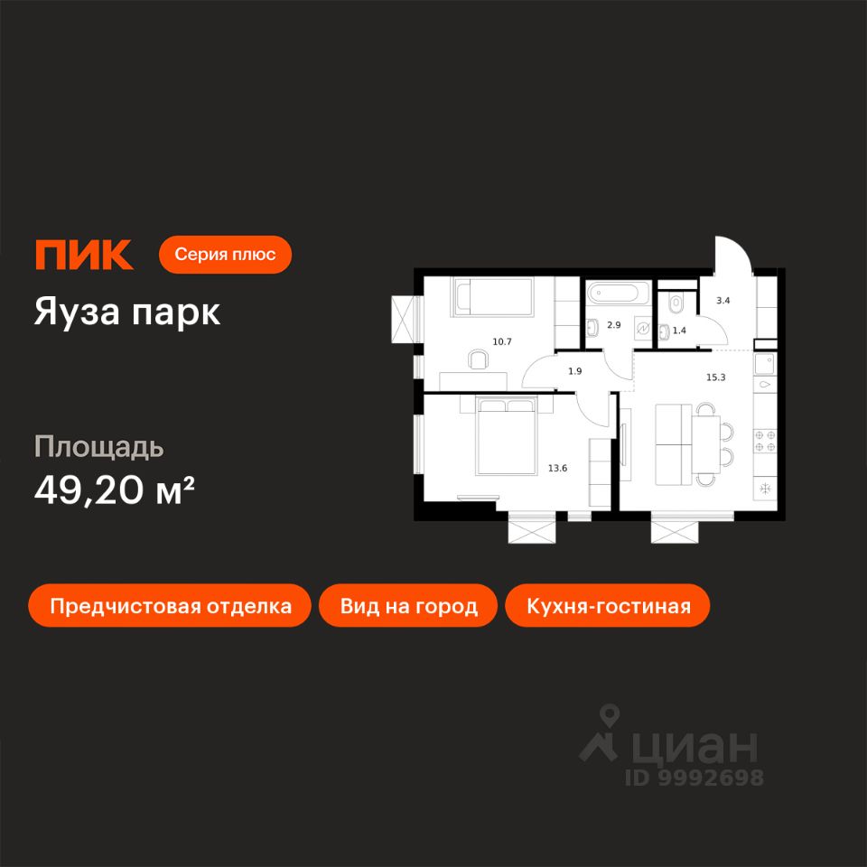 Продаётся 2-комн. квартира площадью 49,3 кв.м на 18 этаже 24 этажного дома (Корпус 10, Секция 1) проекта ПИК Яуза парк. Светлый просторный подъезд на уровне земли, функциональная планировка, большие окна, предчистовая отделка. Жилой квартал ''Яуза парк'' возводится в Мытищах, в 5 минутах ходьбы от одноимённой ж/д станции. Проект включает 20 домов разной этажности с благоустроенными дворами-парками. Сейчас в квартале началось строительство новых корпусов 7-12. Это отличная возможность купить квартиру по стартовой цене. Индивидуальный дизайн фасадов разработали архитектурные бюро KATARSIS и RHIZOME. Вблизи жилого квартала появятся шумопоглощающие экраны, позволяющие забыть о том, что неподалёку находятся железнодорожные пути. На первых этажах домов откроются магазины, кафе, салоны красоты и другие полезные сервисы. Рядом есть школы и детские сады, магазины и ТРЦ ''Красный кит''. На территории проекта появится благоустроенная набережная реки Яузы и пешеходный бульвар для прогулок всей семьёй. Водонапорную башню XIX века, расположенную на территории ''Яуза парка'', мы реставрируем и создадим вокруг неё общественное пространство для отдыха жителей квартала. Для прогулок отлично подойдёт Мытищинский центральный парк культуры и отдыха, расположенный в 10 минутах ходьбы, и Лосиный остров — в 24 минутах. Дорога на автомобиле до Ярославского шоссе займёт не более 3 минут, до МКАД — 10 минут. Артикул 999446 (Застройщик ООО ''Специализированный ''НМ-Консалт'')