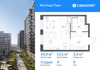 Строим кварталы для жизни с заботой о будущем. Предлагается квартира студия комфорт-класса 21,5 кв.м в корпусе 4 на 7 этаже, в ЖК ''Мытищи Парк''Квартира с чистовой отделкой. Доступность дополнительных опций уточняйте у застройщика.Приобрести квартиру возможно по специальным акциям от застройщика, с текущими условиями акций можно ознакомиться в блоке ''Акций''.Цена динамическая и может отличаться, уточняйте актуальность у застройщика.ЖК ''Мытищи Парк'' — это надежные и долговечные монолитные корпуса. При проектировании домов и территории застройщик учел потребности жильцов всех возрастов — молодых пар, семей с детьми и пожилых людей.ЖК ''Мытищи Парк'' расположен в Московской области и с двух сторон окружен Пироговским лесопарком.