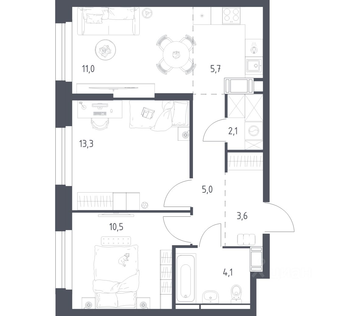 21 м² · Этаж 11 из 17