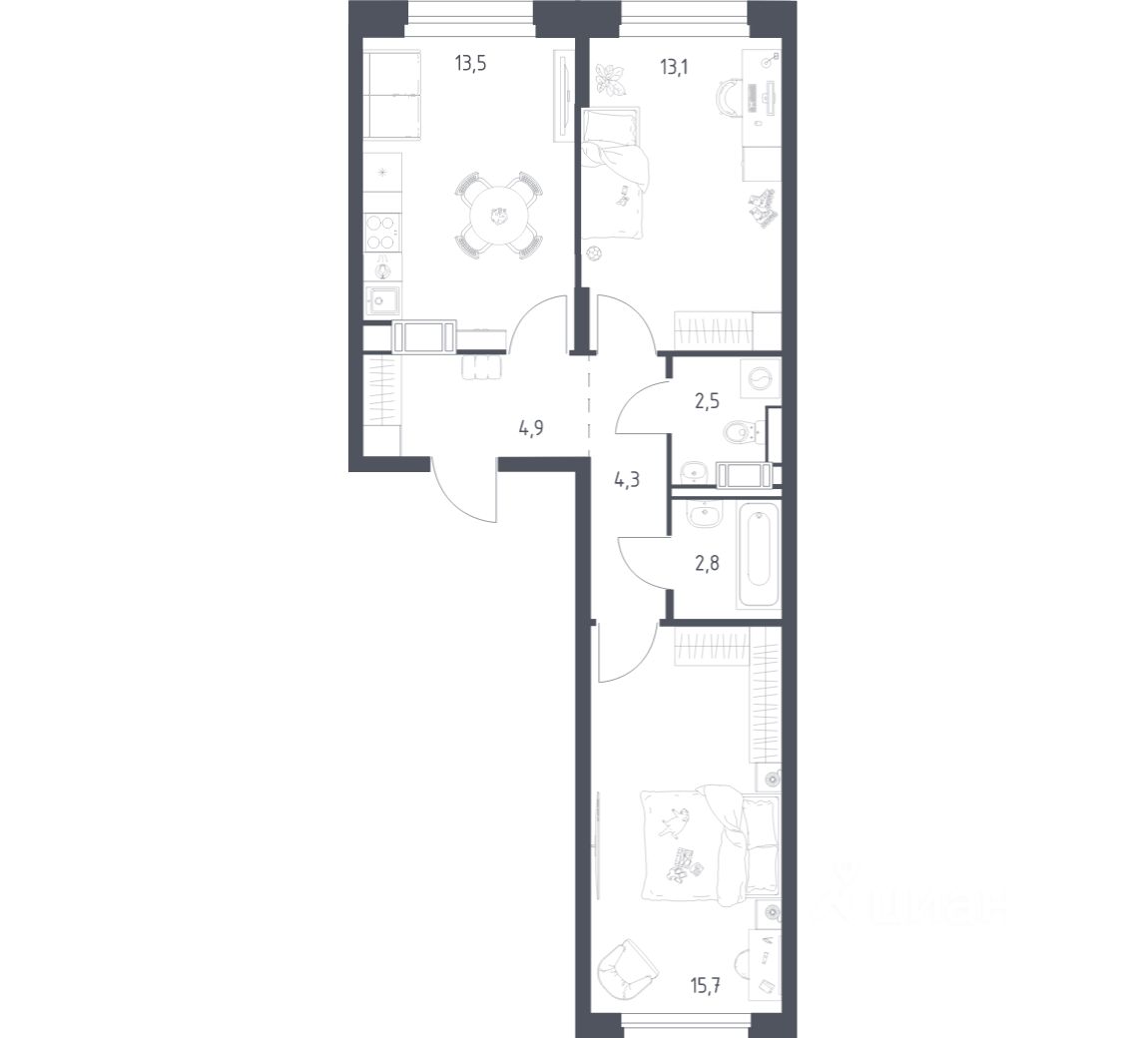 54 м² · Этаж 7 из 17