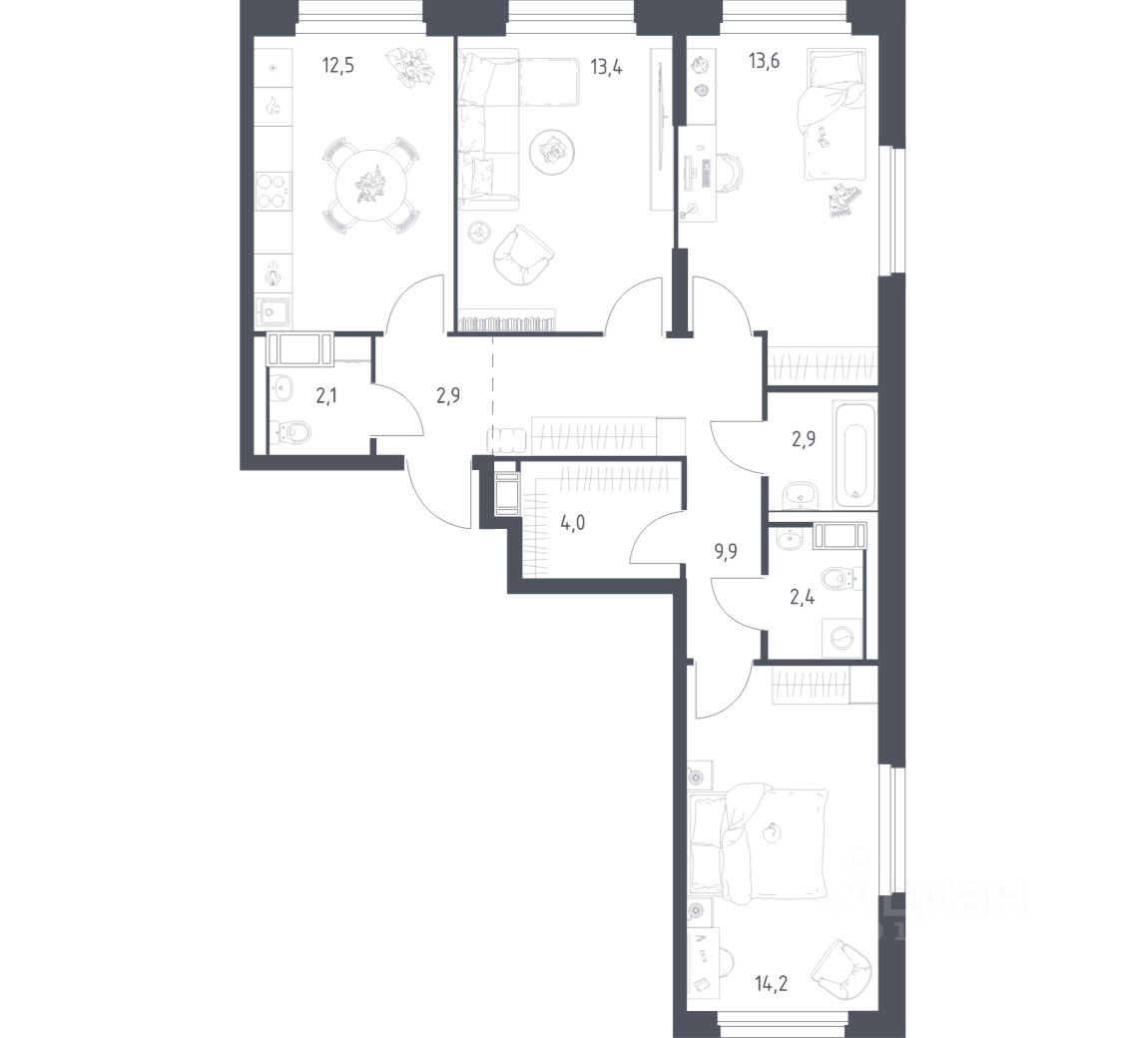 Четырехкомнатные