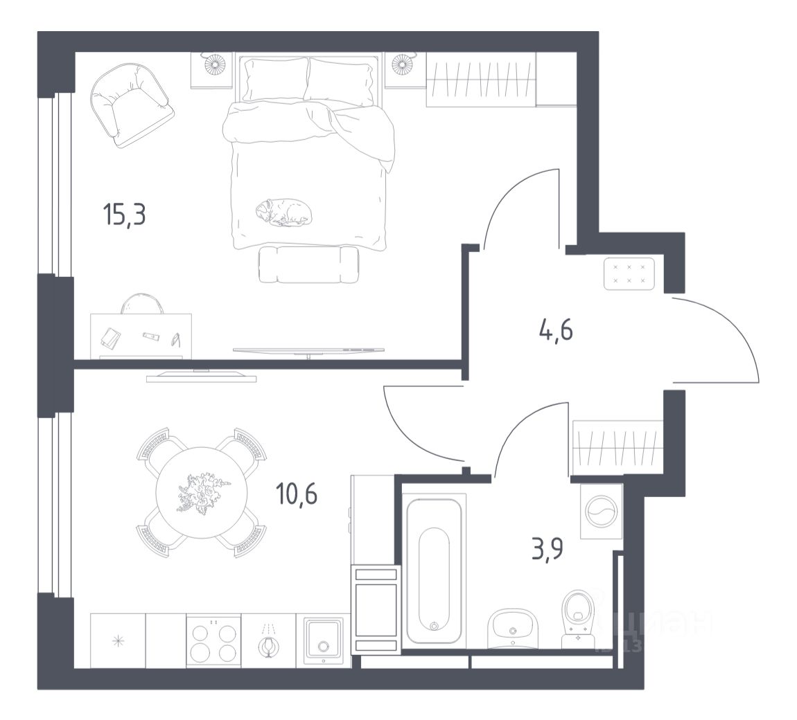 39 м² · Этаж 15 из 17