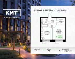 Продаётся 1-к квартира 39.37 кв.м. без отделки в ЖК ''КИТ2'' на 15-м этаже 25 этажного дома.Жилой комплекс ''Кит 2'' спроектирован в урбанистической концепции ''Город в Городе''. Объект бизнес-класса предлагает рациональный подход к набору опций, необходимых для гармоничной жизни. Проект представляет собой два корпуса, которые образуют единую приватную территорию. Ее доминантой является двор с красивым ландшафтным дизайном и различными зонами, ориентированными на интересы жителей разного возраста.При создании пространства в приоритет ставился комфорт жителей. В шаговой доступности находятся: торговый центр, рестораны, кинотеатры, спортивный зал, образовательные учреждения и множество других объектов в сфере услуг. Преимущества проекта: - 3 корпуса для приватной жизни - Видовые характеристики (просматриваются Москва - Сити и Останкинская телебашня) - Широкая квартирография по всем типам квартир- Увеличенное остекление - 3 варианта отделки: БОРДО, СТОКГОЛЬМ, ОСЛО - Богатая развлекательная инфраструктура - Высокий уровень безопасности территории Расположение комплекса: - 2,2 км до Волковского шоссе - 2,8 км до Ярославского шоссе - 5,7 км до МКАД - 5 минут пешком до ж/д станции ''Мытищи'' и Автовокзала - 18 минут до станции метро ''Комсомольская'' - 30 минут до станции метро ''Медведково''