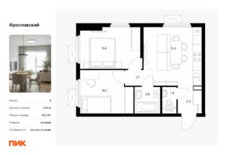 2-к, Ярославский ЖК, 16.4 Показать на карте