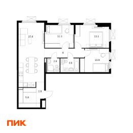 3-к, Институтская, 19 корп. 4 Показать на карте
