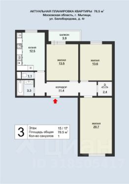 ФУНКЦИОНАЛЬНАЯ ЕВРОТРЁШКА В ПРЕСТИЖНОМ ДОМЕ!ул. Белобородова, д. 2, корп. 3.КВАРТИРА общей площадью по ЕГРН 81,7 кв.м. + 2,8 кв.м. тёплая лоджия = 84,5 кв.м.! Расположена на 2-ом этаже, не угловая!Максимально продуманная планировка (узаконена): - кухня-гостиная 29,5 кв.м.,- спальная 14,4 кв.м.,- спальная 13,3 кв.м.,- 1-ый сан. узел 4,0 кв.м. с душевой кабиной,- 2-ой сан. узел 4,0 кв.м.,- кладовая-гардеробная 4 кв.м,- лоджия 2,8 кв.м. с выходом из кухни.В квартире видеодомофон, дорогая входная дверь с замками (Италия), окна пластиковые с двухкамерными стеклопакетами с напылением, заполненные инертным газом, полы в жилых комнатах дубовый массив, в кухне, коридорах, сан. узлах, лоджии керамогранит, везде с подогревом, биметаллические радиаторы отопления с регуляторами, в процессе отделки были сразу заменены все водопроводные и канализационные трубы, электропроводка (розетки и выключатели Legrand, автоматы ABB).Кухня-гостиная: Кухонный гарнитур в отличном состоянии со встроенной техникой: индукционная варочная поверхность, духовой шкаф с паром, микроволновая печь, кофемашина ВСЁ Neff, посудомоечная машина Siemens, холодильник и морозильная камера Liebherr, каменные столешница и мойка, фильтр воды с выводом в основной кран. Обеденный стол. Кондиционер Hitachi. Разноуровневое освещение. Спальная 14,4 кв.м.: встроенный шкаф-купе, встроенные ниши для декоративных вещей, разноуровневое освещение, кондиционер Hitachi.Спальная 13,3 кв.м.: многофункциональная корпусная мебель, диван-кровать.1-ый сан. узел: большая душевая кабина с гидромассажем и турецкой баней, навесная тумба с раковиной, тёплые полы, раздвижная дверь с матовым стеклом.2-ой сан. узел: унитаз и биде инсталляции, стиральная машина, навесная тумба с раковиной, накопительный водонагреватель на случай временного отключения горячей воды, тёплые полы, раздвижная дверь с матовым стеклом.Кладовая-гардеробная обеспечивает необходимое место хранения вещей и порядок в квартире!Лоджия с кухни, пластиковые двухкамерные окна, тёплые полы, керамогранит, с выведенным освещением.Вся встроенная мебель остаётся, остальное по договорённости! ДОМ 2006 года. Кирпичный, тёплый, не монолит или панель, как дом на против (д. 2, к. 2)! Подземный паркинг можно купить или арендовать! Консьерж. Видеонаблюдение. Архитектура дома обеспечила тихий внутренний двор, закрытый от проезжей части, безопасная детская площадка! Вокруг дома всегда есть свободные парковочные места! РАЙОН отличный, спокойный, не современная застройка соответственно очень престижный! Рядом с домом детский сад, школа и школа искусств, без перехода проезжей части! Гимназия 16 в 5 мин. ходьбы. Торговый центр! Вокруг множество объектов инфраструктуры! ТРАНСПОРТ: маршруты до м. Медведково, ж/д ст. Мытищи. Всего 15-20 мин ходьбы до ж/д ст. Мытищи. Быстрый выезд на Волковское, Осташковское или Ярославское шоссе (Москва, Область). УСЛОВИЯ. Прямая, свободная продажа! Один взрослый собственник с 2006!
