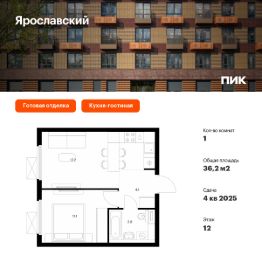 1-к, Ярославский ЖК, 16.3 Показать на карте