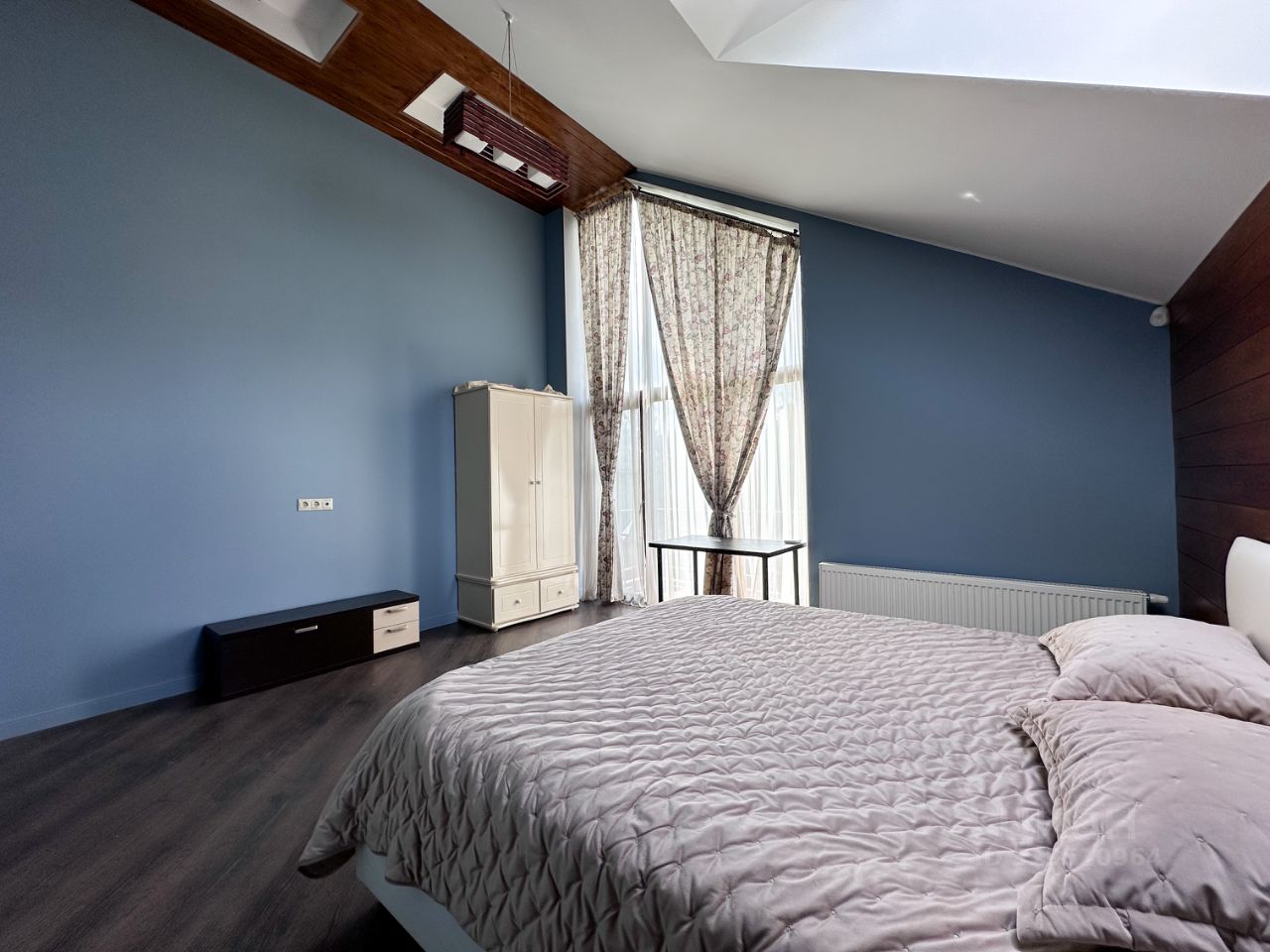В аренду на длительный срок сдается уютный, современный, просторный дом для круглогодичного проживания. В доме 2 этажа. На первом этаже сауна, гостевой санузел, гостевая спальня, большая зона отдыха с камином и огромная кухня со всей необходимой встроенной техникой. На втором этаже зона отдыха, спальня, санузел и кабинет. Высокие потолки, окна в пол, приятная отделка в натуральных оттенках. Установлены кондиционеры на каждом этаже. Есть балкон на втором этаже и просторная терраса на первом, где летом можно поставить лежаки и наслаждаться прекрасной погодой. Так же есть зона барбекю и если вы предпочитаете тень, то всегда можете подремать на качелях под навесом. Для маленьких деток во дворе установлена детская площадка. Территория очень зеленая, красивая. Есть парковка на 2 машины. Если вы хотите жить на природе, в тишине, в современном доме, но при этом быть в быстром доступе к городской инфраструктуре, то этот вариант для вас! Оперативный показ, пожалуйста, звоните!)