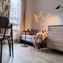 Отличная светлая студия. Полностью готова к проживанию. Есть холодильник, индукционная плита, духовка, микроволновка, кухонная утварь.Предоплата за 1 месяц
