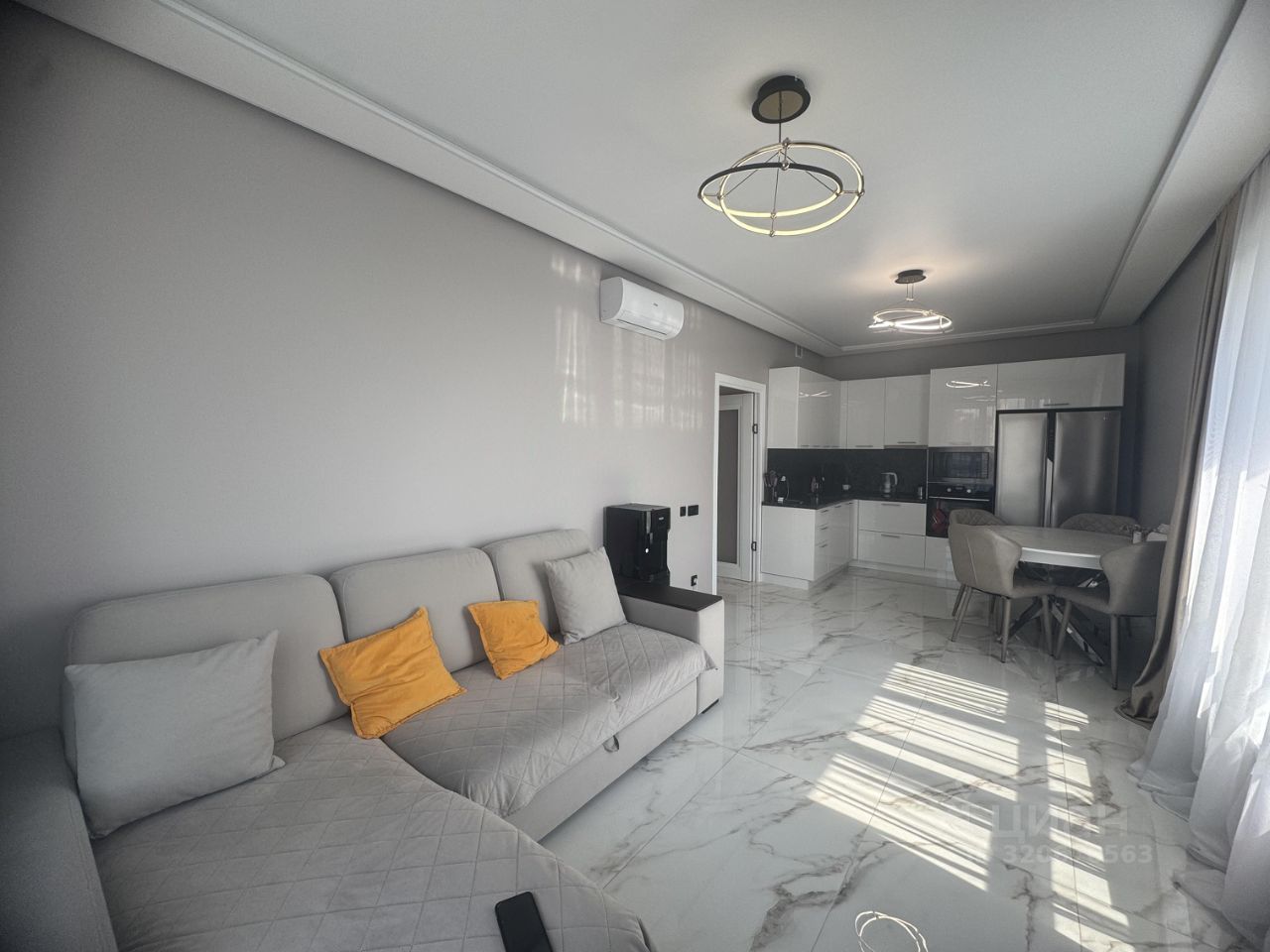 Студия с балконом,новая двух спальная кровать,мебель и бытовая техника вся имеется,на длительный срок,депозит можно разделить на два платежа.Остановка общественного транспорта рядом.В доме множество магазинов,аптеки,школа и садик в пешей доступности.