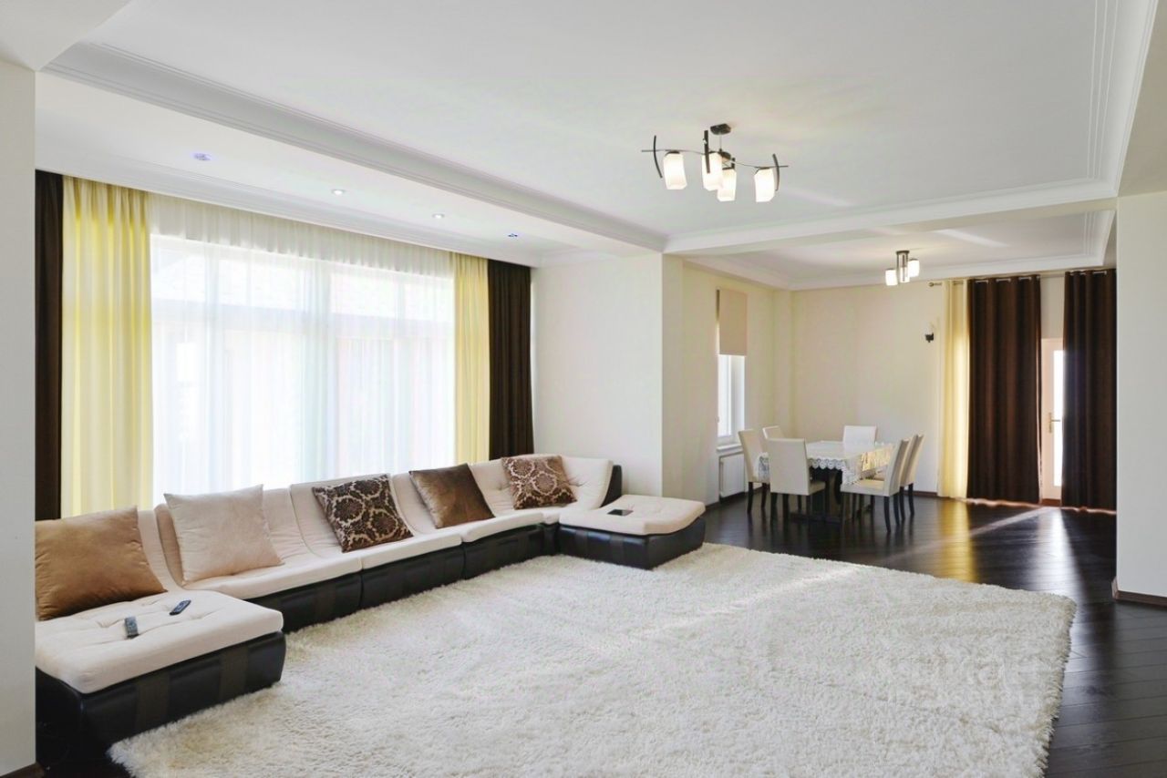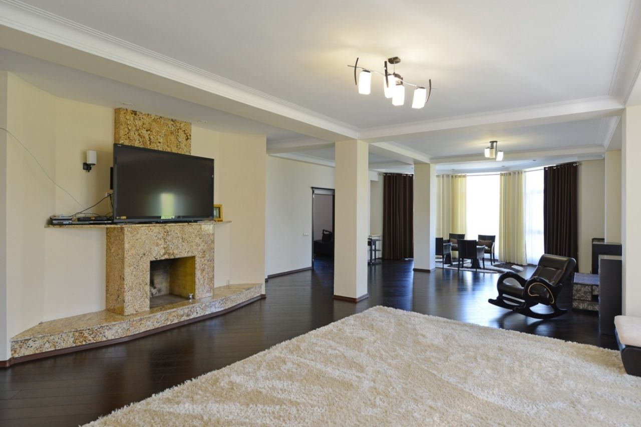 1 этаж: прихожая, гостиная, каминный зал, кухня-столовая, гостевая спальня.