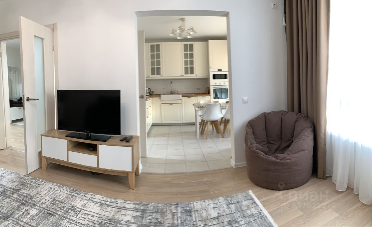 Сдаётся светлая благоустроенная 2х-комнатная квартира (кухня, гостиная и спальня), площадь 70 кв.м., всё продумано, квартира полностью готова для проживания, светлая и чистая, оборудована необходимой бытовой техникой - холодильник, варочная панель + духовой шкаф, микроволновая печь, посудомоечная машина, есть необходимая посуда на кухне, стиральная машина, утюг, пылесос, и мебелью - новый диван, кровать с новым матрасом, места для хранения вещей и одежда. Вай-фай и смарт-тв.