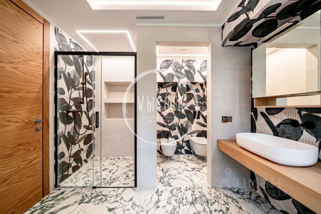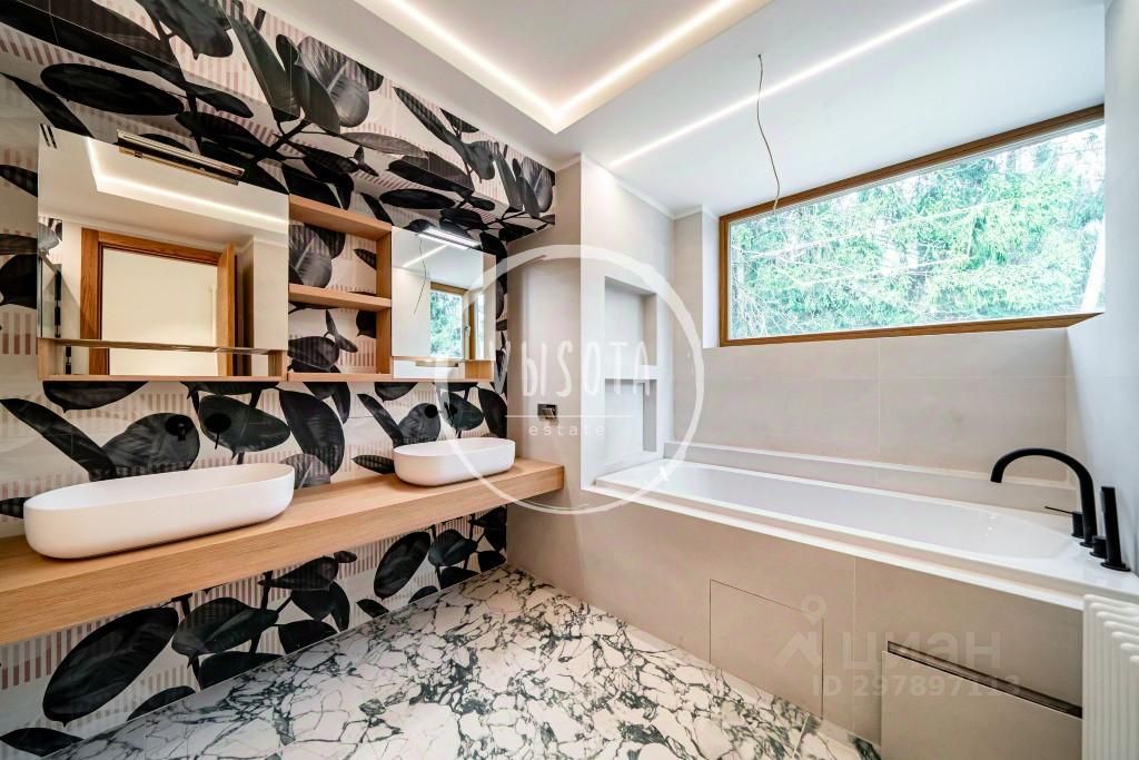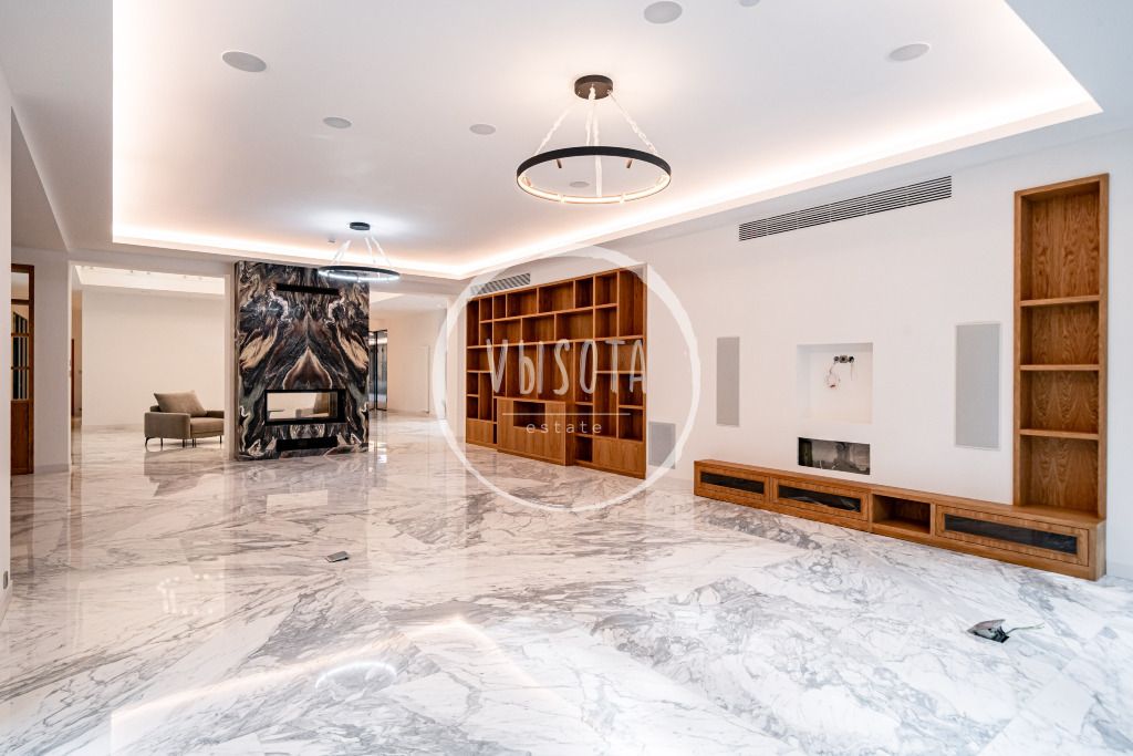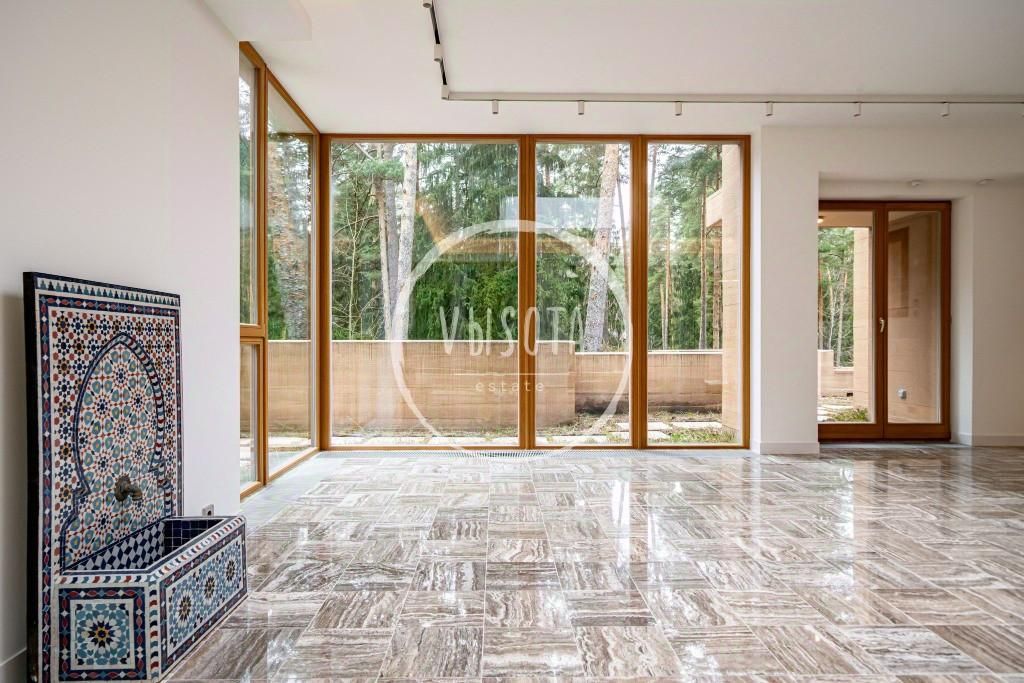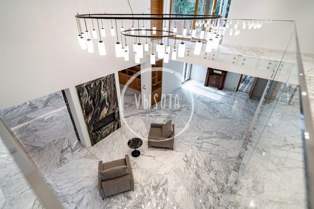 Состав помещений: Цоколь: техническое помещение бассейна, квартира для персонала. 1-й этаж: холл, просторная гостиная-столовая с выходами на террасы, столовая, кухня, кладовая, гостевой с/у, кабинет с с/у, TV комната, SPA-зона с бассейном, сауной, хаммамом, душевой, с/у, тренажерным залом. 2-й этаж: холл с зоной отдыха, мастер-спальня с просторной гардеробной, ванной комнатой, с/у и выходом на балкон, 2 блока с 2-мя спальнями с индивидуальными гардеробными и общими ванными комнатами. 3-й этаж: гостиная, спальня с с/у.