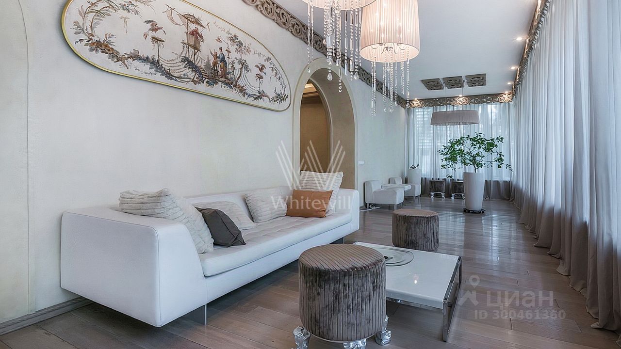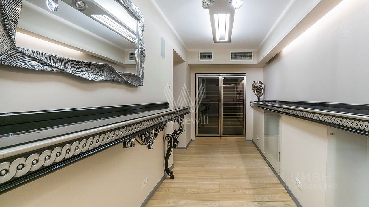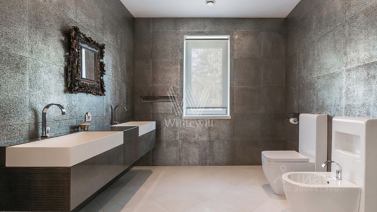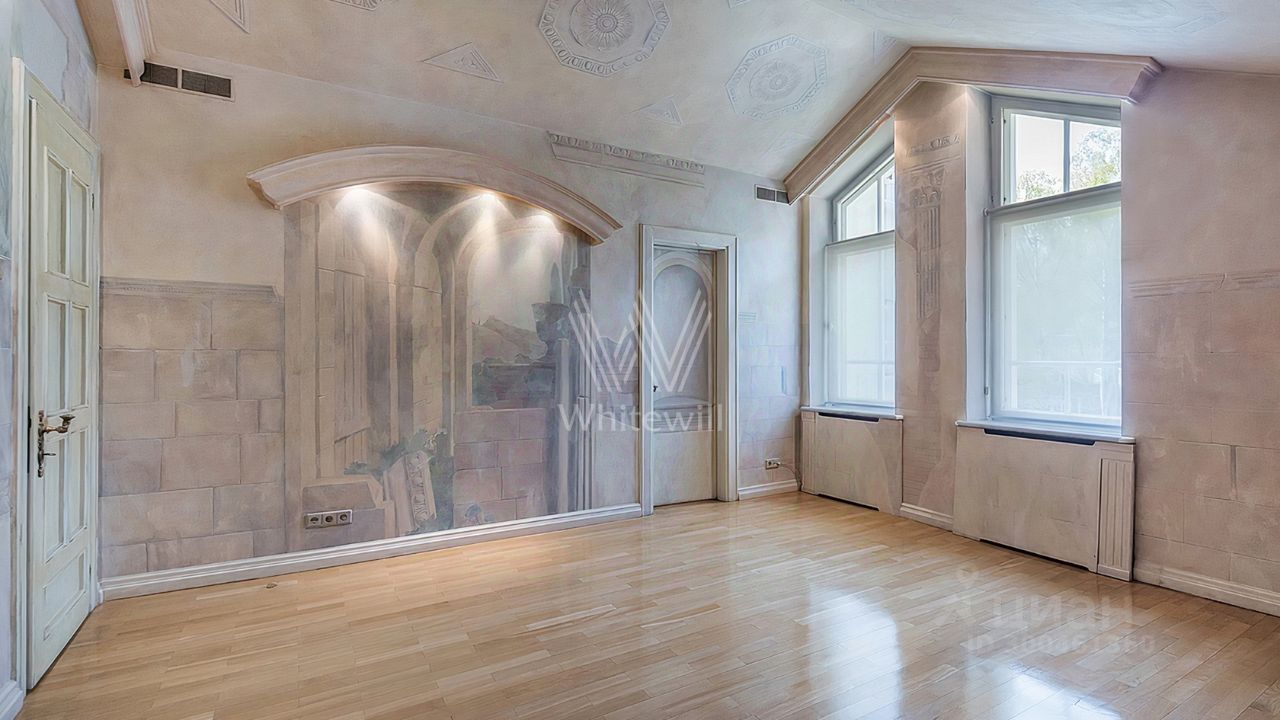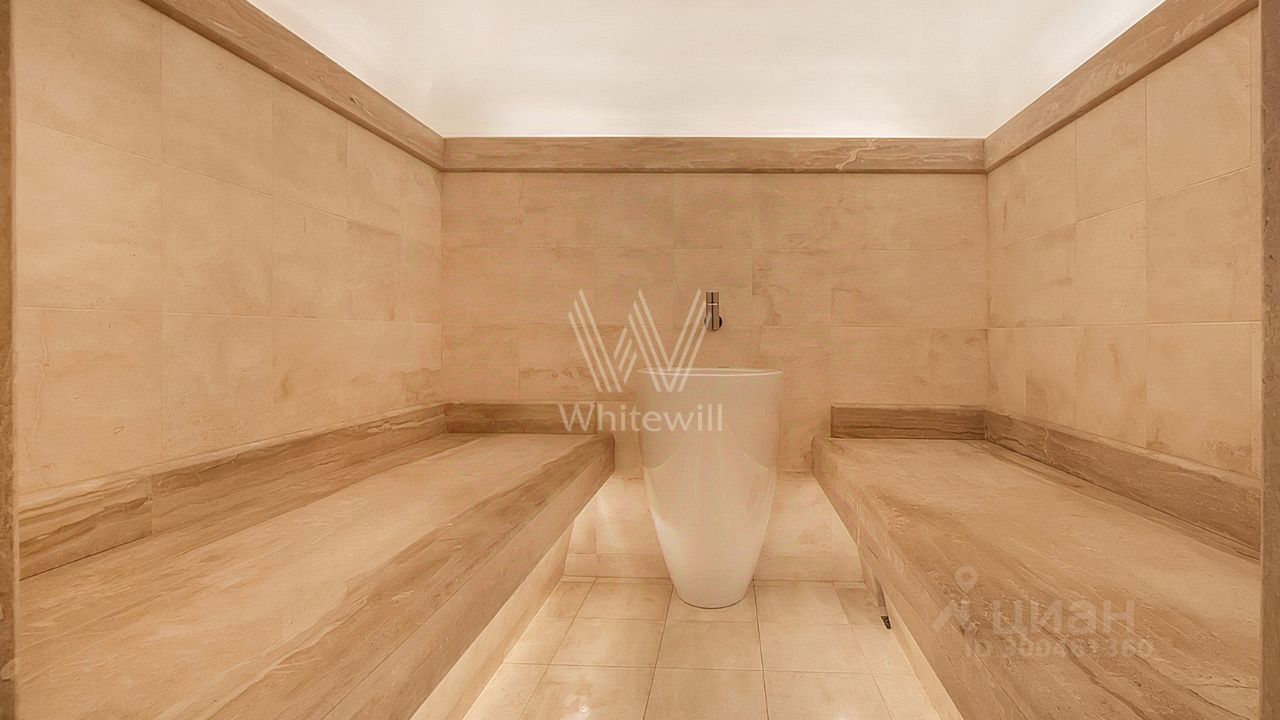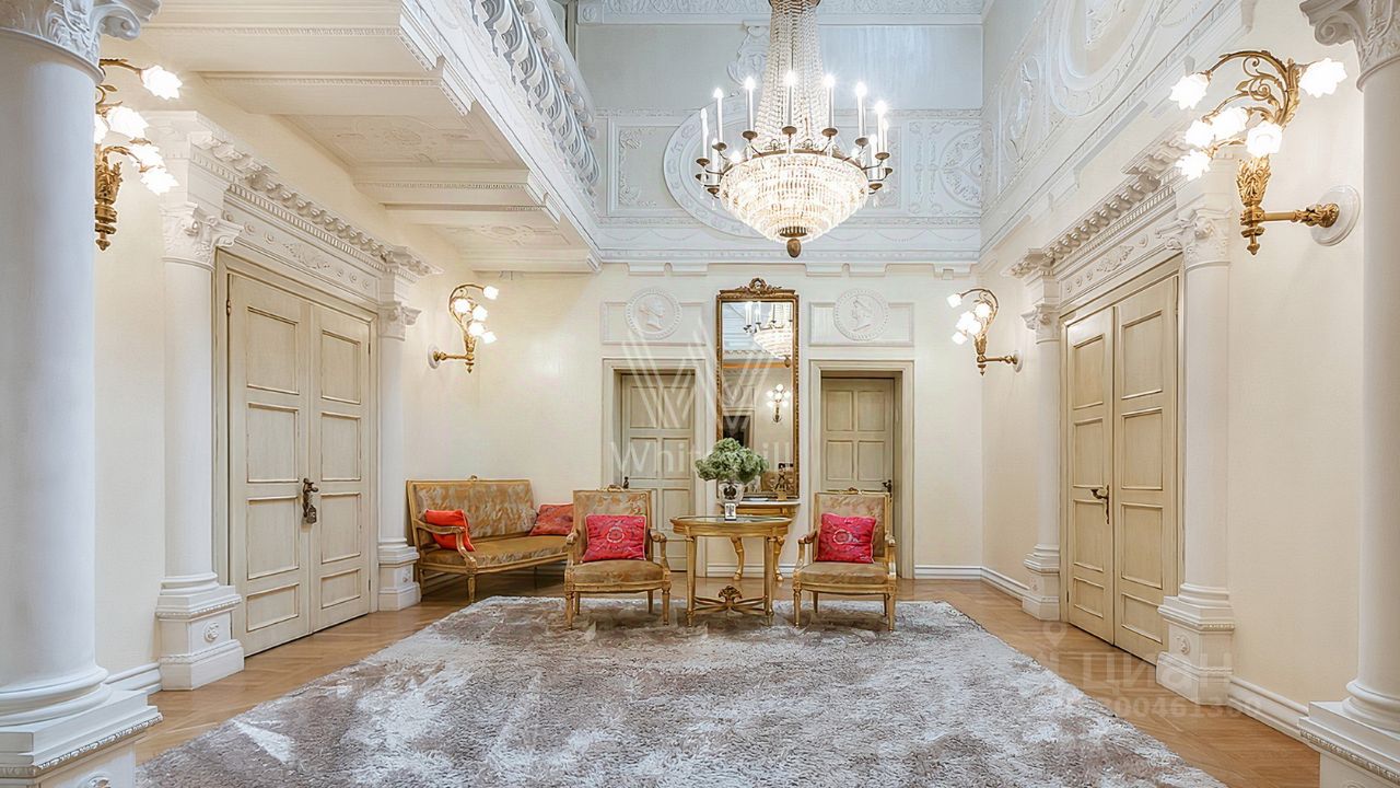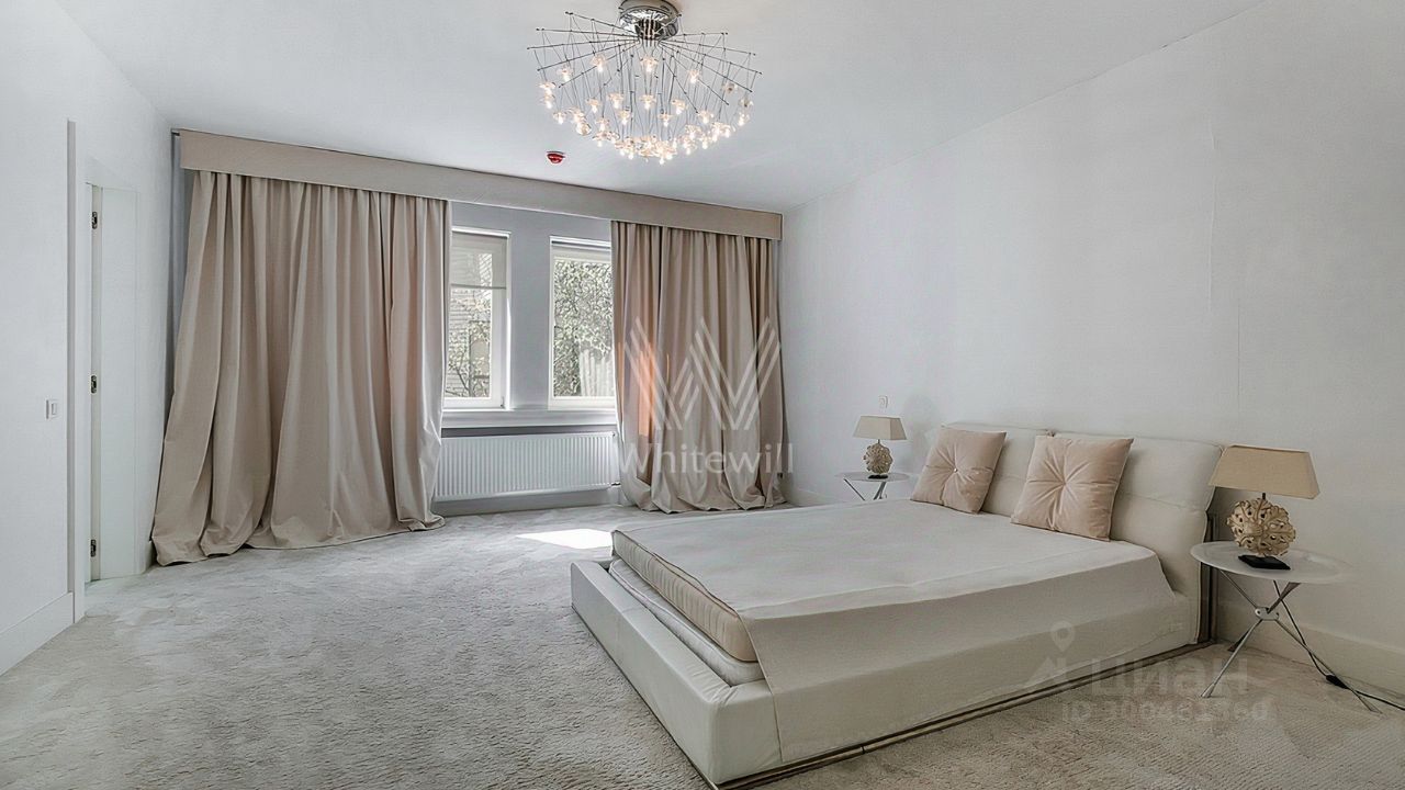 ID 12 268. Новь. Загородный особняк площадью 980 м² построен на просторном участке 53 сотки с многолетними деревьями. Молочный фасад здания выдержан в классическом стиле и декорирован колоннами, балясинами и резными элементами. В отделке интерьера преобладают теплые оттенки в сочетании с фактурой дерева. Планировка резиденции включает 6 спален, гостиную, кабинет-библиотеку, спортивный зал, зимнюю и летнюю веранду, кинотеатр и хаммам. Рядом расположены гостевой дом с 2-мя спальнями и гараж на 2 машины с квартирой для персонала на втором этаже. На участке выполнен ландшафтный дизайн, вымощены дорожки и установлено уличное освещение.