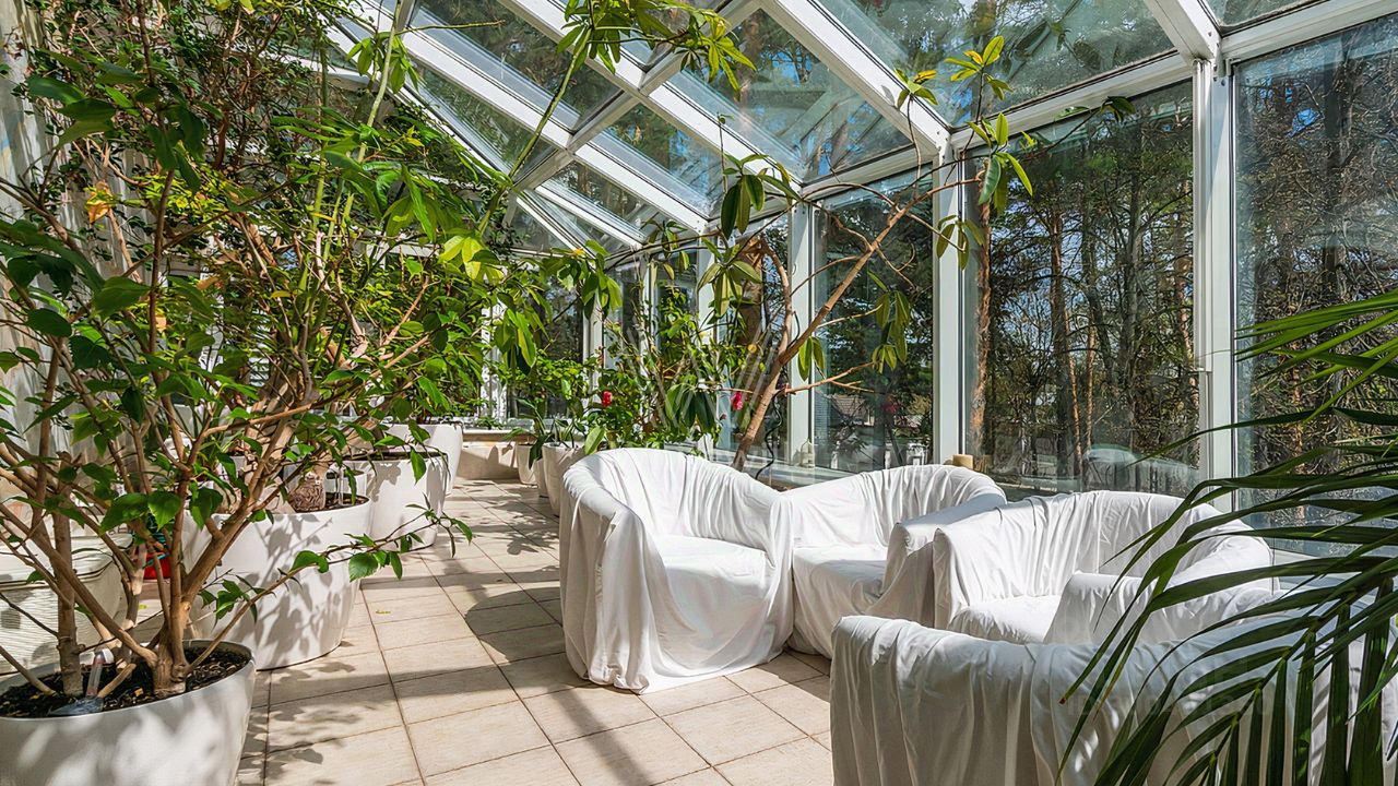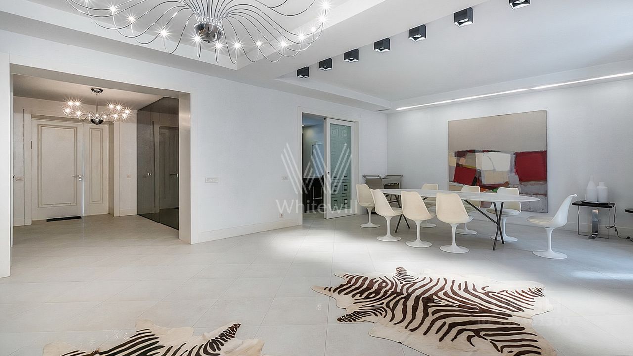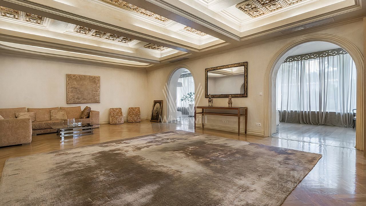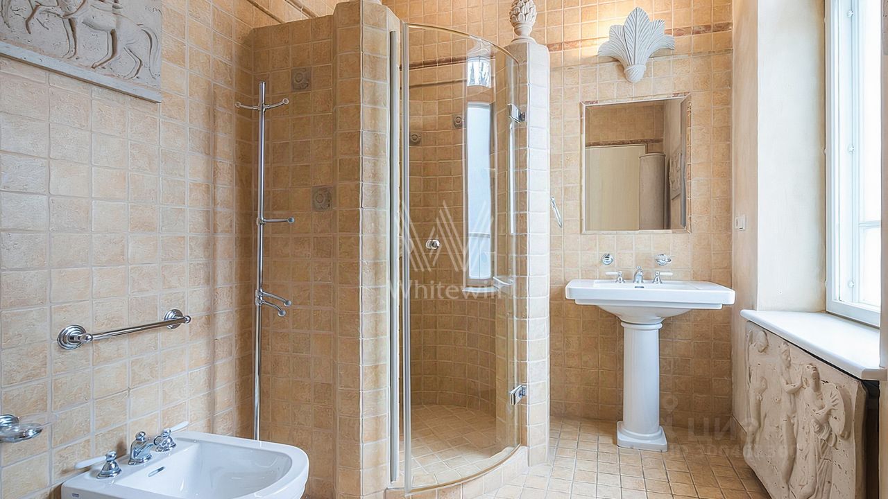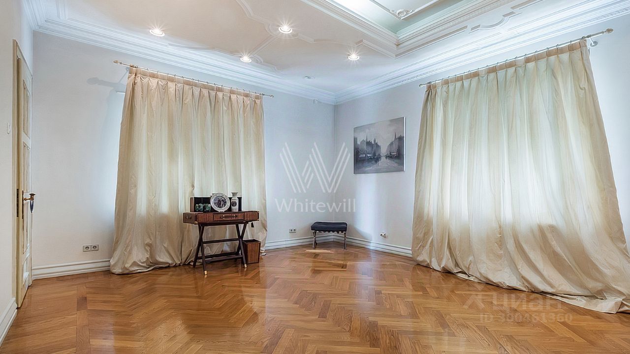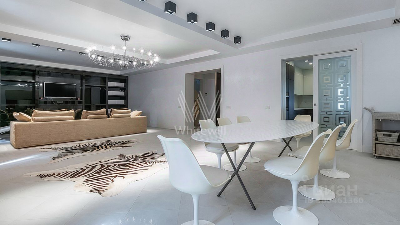 ID 12 268. Новь. Загородный особняк площадью 980 м² построен на просторном участке 53 сотки с многолетними деревьями. Молочный фасад здания выдержан в классическом стиле и декорирован колоннами, балясинами и резными элементами. В отделке интерьера преобладают теплые оттенки в сочетании с фактурой дерева. Планировка резиденции включает 6 спален, гостиную, кабинет-библиотеку, спортивный зал, зимнюю и летнюю веранду, кинотеатр и хаммам. Рядом расположены гостевой дом с 2-мя спальнями и гараж на 2 машины с квартирой для персонала на втором этаже. На участке выполнен ландшафтный дизайн, вымощены дорожки и установлено уличное освещение.