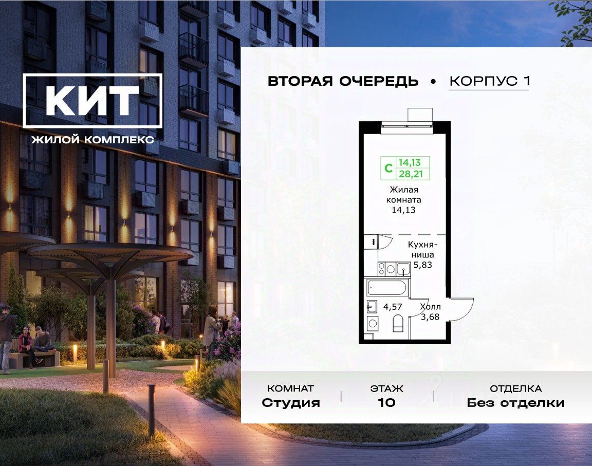 Продаётся студия 28.21 кв.м. без отделки в ЖК ''КИТ2'' на 10-м этаже 25 этажного дома.Жилой комплекс ''Кит 2'' спроектирован в урбанистической концепции ''Город в Городе''. Объект бизнес-класса предлагает рациональный подход к набору опций, необходимых для гармоничной жизни. Проект представляет собой два корпуса, которые образуют единую приватную территорию. Ее доминантой является двор с красивым ландшафтным дизайном и различными зонами, ориентированными на интересы жителей разного возраста. При создании пространства в приоритет ставился комфорт жителей. В шаговой доступности находятся: торговый центр, рестораны, кинотеатры, спортивный зал, образовательные учреждения и множество других объектов в сфере услуг.