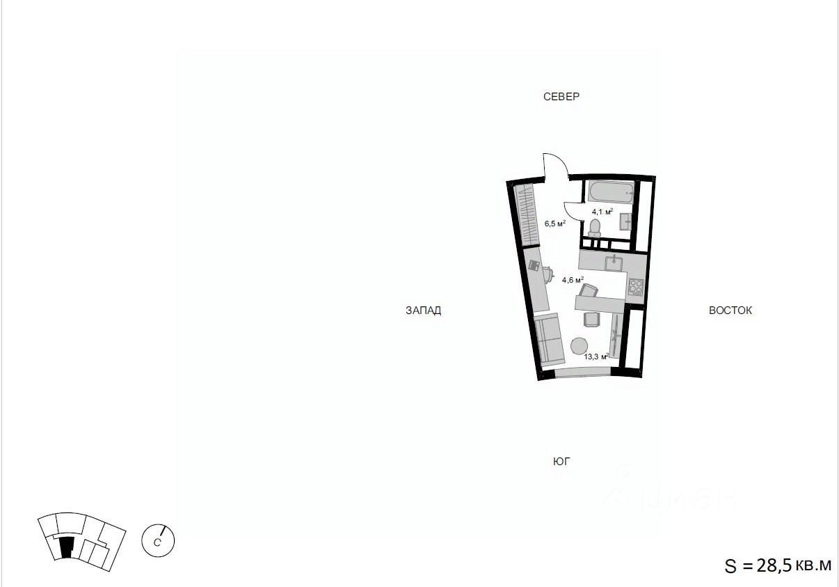 Продаётся студия в строящемся доме (Корпус 1), срок сдачи: IV-кв. 2025, общей площадью 28.5 кв.м., на 13 этаже. Многоквартирный жилой дом со встроенно-пристроенными нежилыми помещениями и автостоянкой