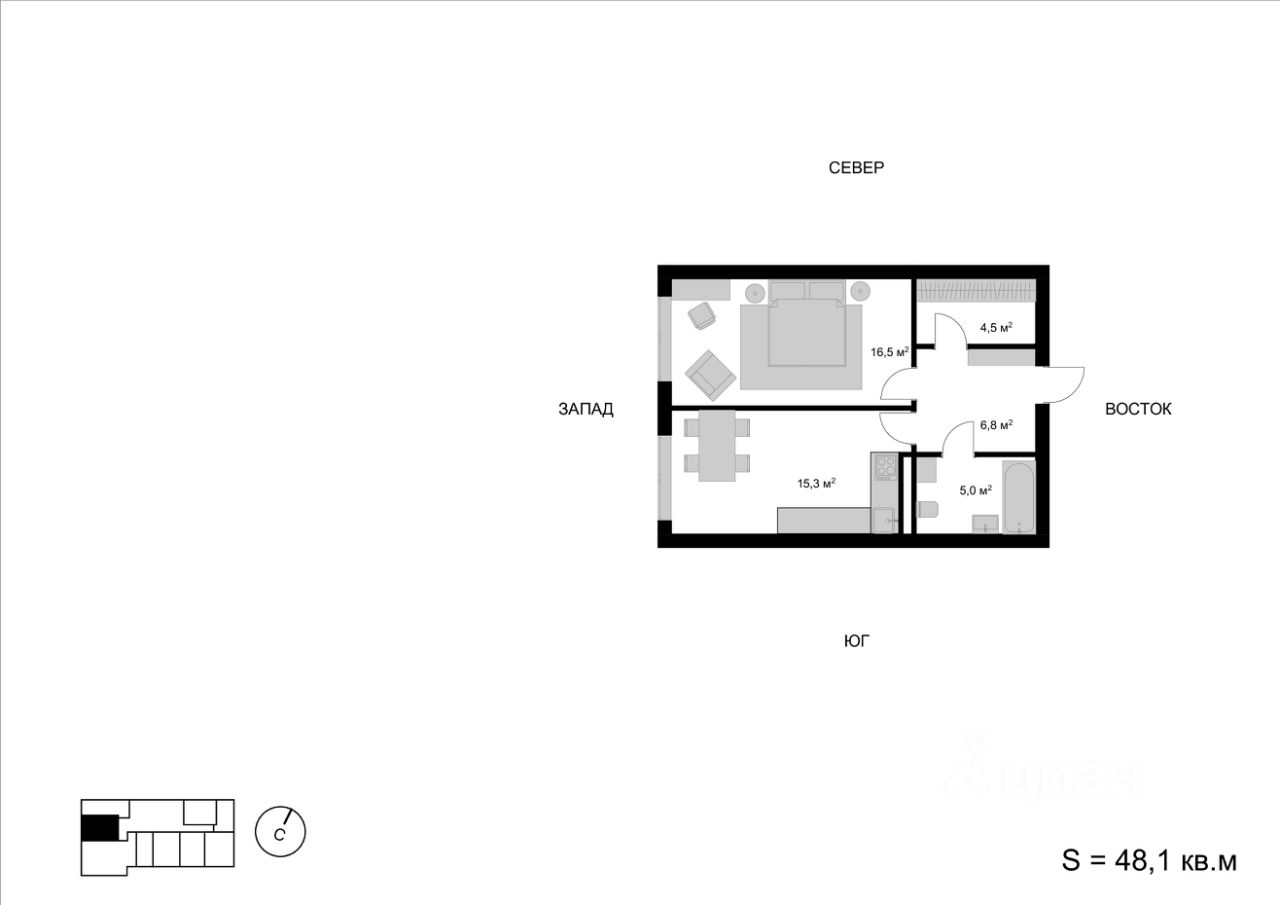 Продаётся 1-комнатная квартира в строящемся доме (Корпус 1), срок сдачи: I-кв. 2026, общей площадью 48.1 кв.м., на 2 этаже. Многоквартирный жилой дом со встроенно-пристроенными нежилыми помещениями и автостоянкой