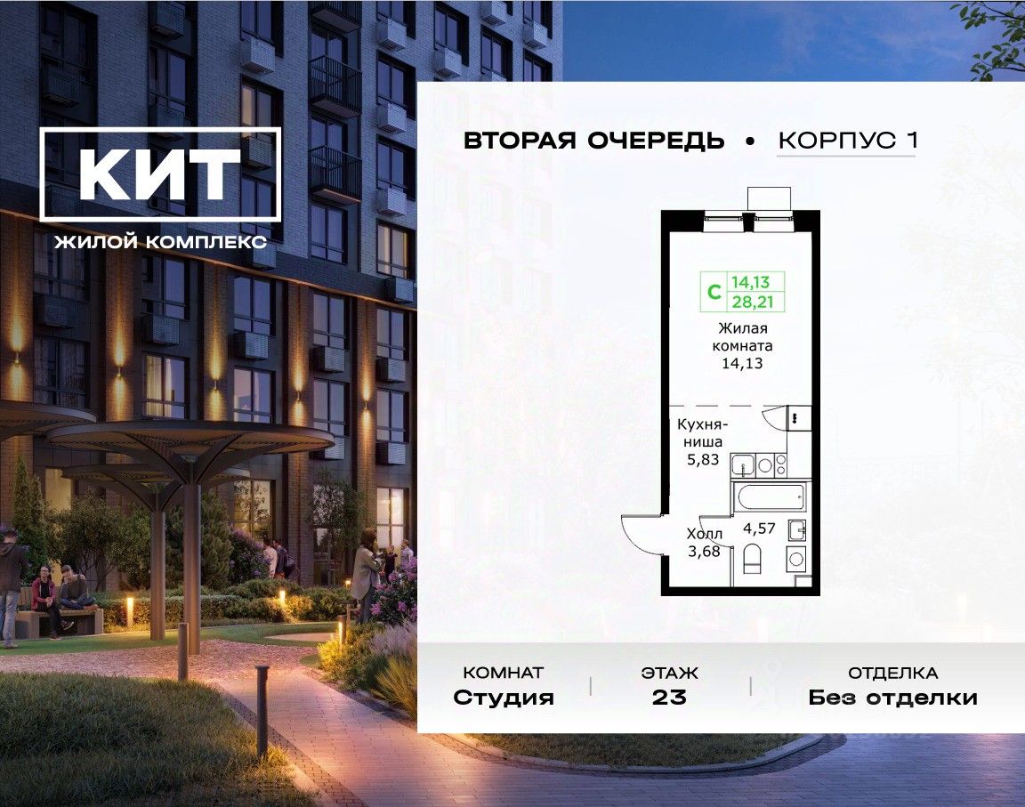 Продаётся студия 28.21 кв.м. без отделки в ЖК ''КИТ2'' на 23-м этаже 25 этажного дома.Жилой комплекс ''Кит 2'' спроектирован в урбанистической концепции ''Город в Городе''. Объект бизнес-класса предлагает рациональный подход к набору опций, необходимых для гармоничной жизни. Проект представляет собой два корпуса, которые образуют единую приватную территорию. Ее доминантой является двор с красивым ландшафтным дизайном и различными зонами, ориентированными на интересы жителей разного возраста. При создании пространства в приоритет ставился комфорт жителей. В шаговой доступности находятся: торговый центр, рестораны, кинотеатры, спортивный зал, образовательные учреждения и множество других объектов в сфере услуг.