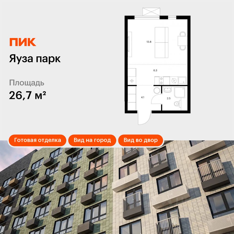 Продаётся квартира-студия площадью 26,7 кв.м на 21 этаже 24 этажного дома (Корпус 5, Секция 1) проекта ПИК Яуза парк. Светлый просторный подъезд на уровне земли, функциональная планировка, большие окна, c отделкой.