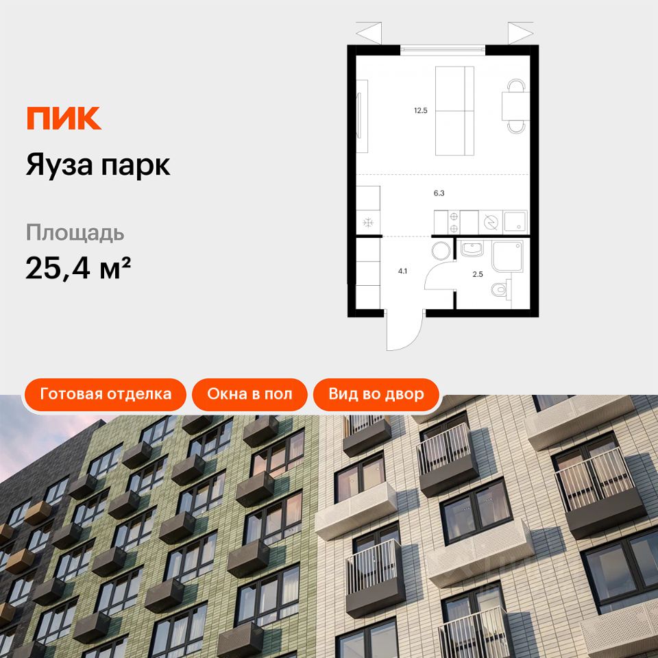 Продаётся квартира-студия площадью 25,4 кв.м на 21 этаже 24 этажного дома (Корпус 6, Секция 1) проекта ПИК Яуза парк. Светлый просторный подъезд на уровне земли, функциональная планировка, большие окна, c отделкой.