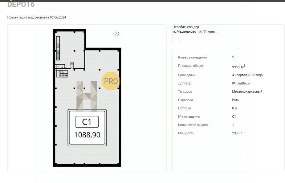 Коммерческий объект: 998,90 кв.м., 1 этаж в комплексе DEPO16, 1 очередь, корп.1, сдача: 4кв. , этажей: 1, адрес Челобитьево дер.,